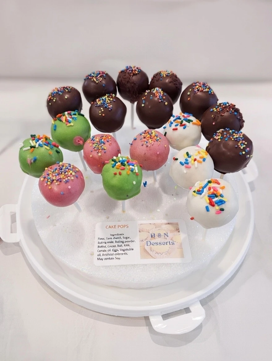 Scratch-made cake pops that bring fun, gourmet flair to dessert offerings—ideal for restaurants, cafes, catering or event partners.