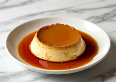 This traditional flan — a silky-smooth, rich custard made with real eggs, milk, and vanilla, topped with a golden caramel sauce that melts into every spoonful.
