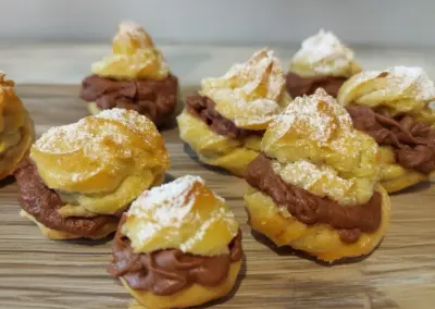 Fresh from our family kitchen with real ingredients, they’re filled with silky pastry cream (or whipped cream variations) for an indulgent yet refined bite. Perfect for upscale specials, catering trays, or pairing with coffee/tea. Contact us for pricing and filling options.
